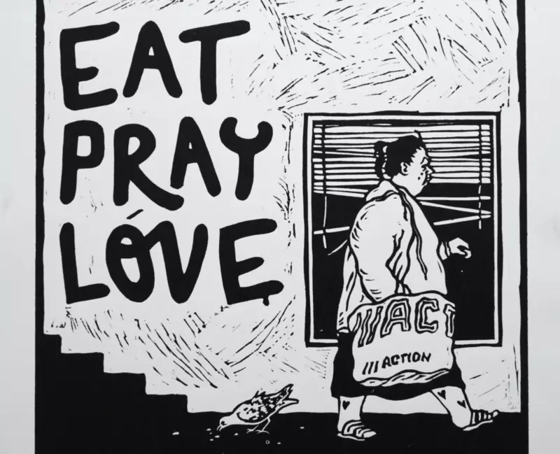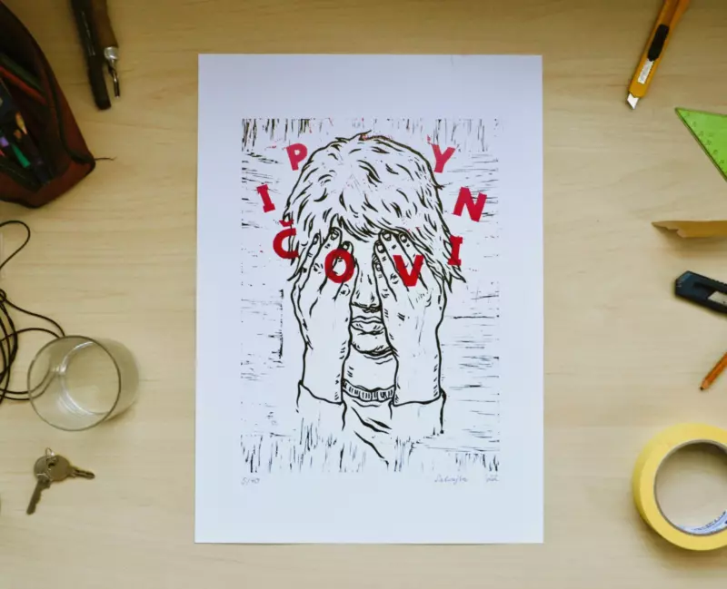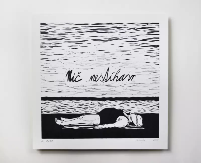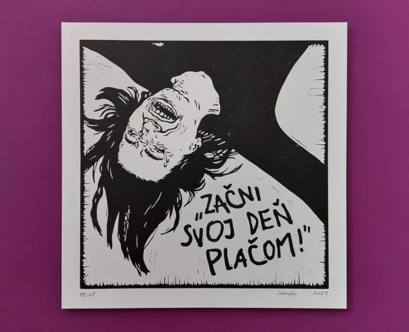 „"Začni svoj deň plačom!"“, linoryt, 2024