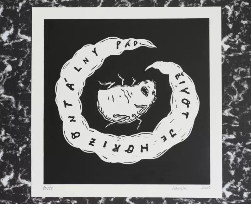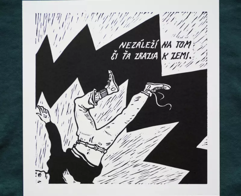 „"Nezáleží na tom, či ťa zrazia k zemi"“, linoryt, 2025